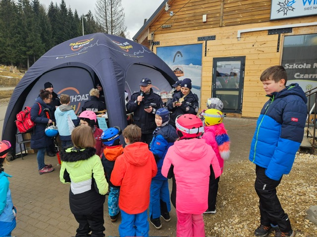 Przez cały okres zimowy na stokach naszego powiatu służbę pełnią Funkcjonariusze Policji. Dbają o bezpieczeństwo miłośników zimowego szaleństwa, kontrolują czy przestrzegane są zasady bezpiecznego korzystania ze stoków a w razie potrzeby pomagają poszkodowanym.