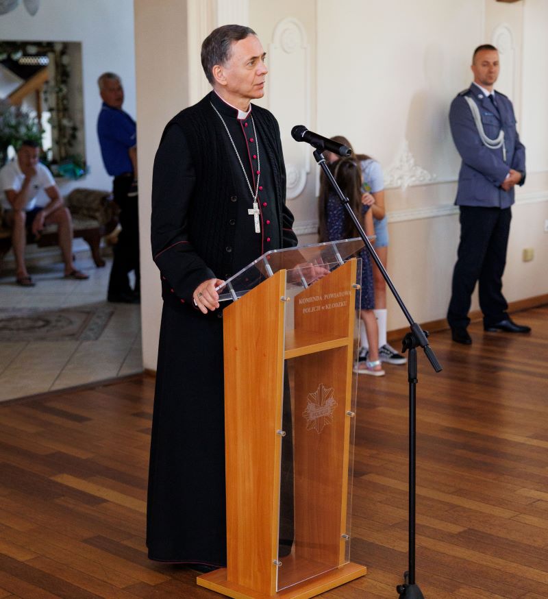 Uroczyste obchody Święta Policji w powiecie kłodzkim zainaugurowała Msza Święta w Sanktuarium Matki Bożej Wambierzyckiej Królowej Rodzin w Wambierzycach, której przewodniczył JE ksiądz biskup Adam Bałabuch. W koncelebrze uczestniczyli ksiądz Kapelana Kłodzkiej Policji Ryszard Szkoła oraz Ojciec Albert Krzywański kustosz Sanktuarium w Wambierzycach. Po uroczystej mszy świętej kolejnym etapem uroczystości Święta Policji Powiatu Kłodzkiego był uroczysta zbiórka z okazji rocznicy powołania Policji Państwowej. W tym roku Policja obchodzi 104. rocznicę jej powołania.
